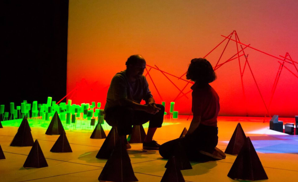 El videoartista Txalo Toloza-Fernández y la coreógrafa Laida Azkona viajaron hasta la Patagonia para descubrir lo que hay detrás del conflicto: las caras de sus protagonistas. Y volvieron con un montón de testimonios de mapuches que reproducen a lo largo de la función, intercalados con proyecciones y animaciones didácticas, mientras ambos artistas construyen sobre el escenario un paisaje patagónico esquemático (montañas, planicies y lagos) con varas de plástico, conos y gelatinas.